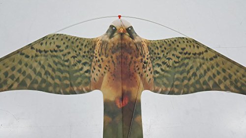 El espantapájaros eolo halcón, está diseñado para la disuasión de todo tipo de aves en explotaciones agrÃcolas y urbanas. Su efecto disuasorio, las ahuyenta de forma instantánea y permanente. Fabricado en tela de alta resistencia el eolo halcón está diseñado para permanecer en vuelo de forma sostenida i continuada con tan solo una leve brisa. El dispositivo viene provisto de un mástil telescópico de 5m de altura y un hilo invisible, el cual permite que el eolo halcón realice vuelos y picados de hasta 10mts. de altura, proyectando su sombra i silueta a grandes distancias. Para su mayor eficacia aconsejamos cambiarlo de ubicación de la zona instalada cada 5 o 6 dÃas, y desmontarlo cuando la presión de las aves haya desaparecido. De esta forma, evitaremos que las aves puedan acostumbrarse a su presencia. Con esta combinación podrá proteger un área equivalente a 700 mts2 de cualquier tipo de cultivo y áreas concretas de zonas urbanas, pudiendo efectuar acciones de control de plagas. The eolo hawk scarecrow, is designed to deter all kinds of birds in agricultural and urban farms. Its deterrent effect, drives off them instantly and permanently. Made of high strength fabric Eolo Hawk is designed to stay aloft with only a slight breeze. The device comes equipped with a telescopic mast 5m high and an invisible thread, which allowing that eolo hawk make chopped flight until 10mts. high, casting a shadow over long distances and also its silhouette. To increase its effectivity, its location must be changed every 5 or 6 days, so that remove the pressure when the birds have disappeared. In this way, we avoid that birds can get used to their presence. With this combination we can protect till 700 m2 of any kind of crop. It also can be used at urban areas, airport facilities, and also it perform actions of pest control.